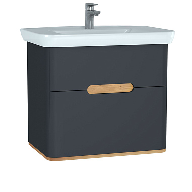 86 090 ₽/шт Тумба с раковиной Vitra Sento 65 c 2 ящиками, LEDподсветка, антрацит матовый (отдельно ножки 61069) Артикул— 60834 Цвет— Матовый антрацит Материал изделия— МДФ Страна производства— Турция Нет в наличии
