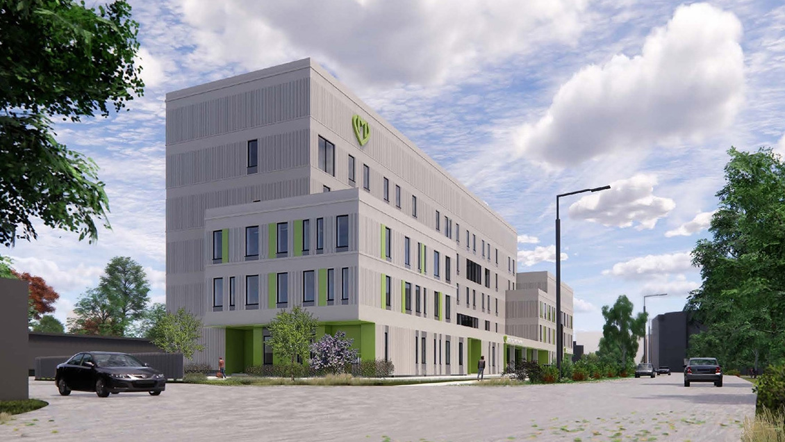 Новое здание поликлиники представляет собой пятиэтажный корпус площадью 9 400 квадратных метров, что почти в 1,5 раза больше старого сооружения. Благодаря расширению там удалось разместить клинико-диагностическую лабораторию, отделение физиотерапии с кабинетами массажа и залом лечебной физической культуры, а также отделение профилактики.