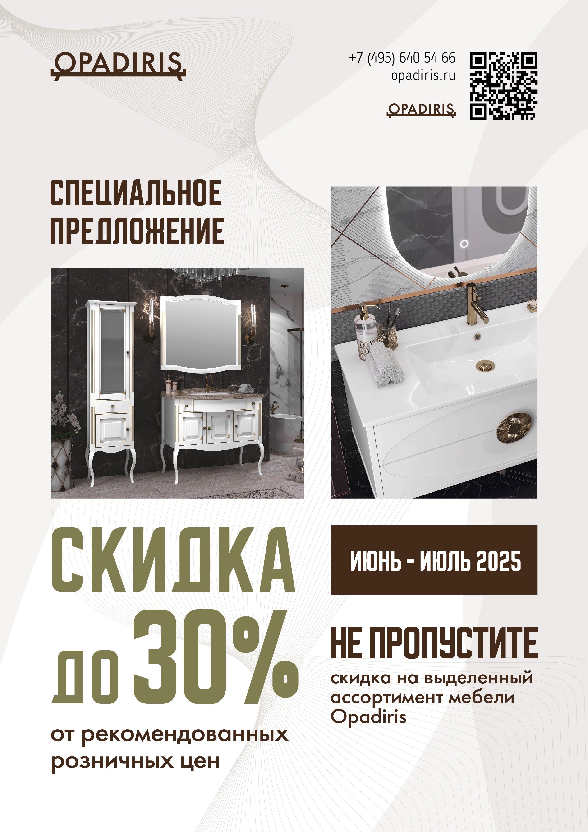 Информируем вас о проведении Акции с 2 июня по 31 июля 2025 года на выделенный ассортимент мебели для ванных комнат OPADIRIS.